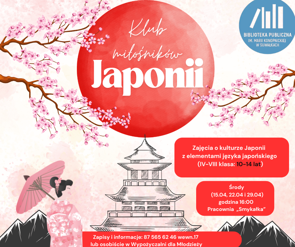 Zapraszamy młodzież na zajęcia z języka japońskiego – miejsca, w którym nauka spotyka się z pasją. Zajęcia poprowadzi Agnieszka Makowska, pasjonatka Japonii. Poznacie nie tylko podstawy języka, ale też fascynującą kulturę Japonii, jej zwyczaje i codzienne życie.