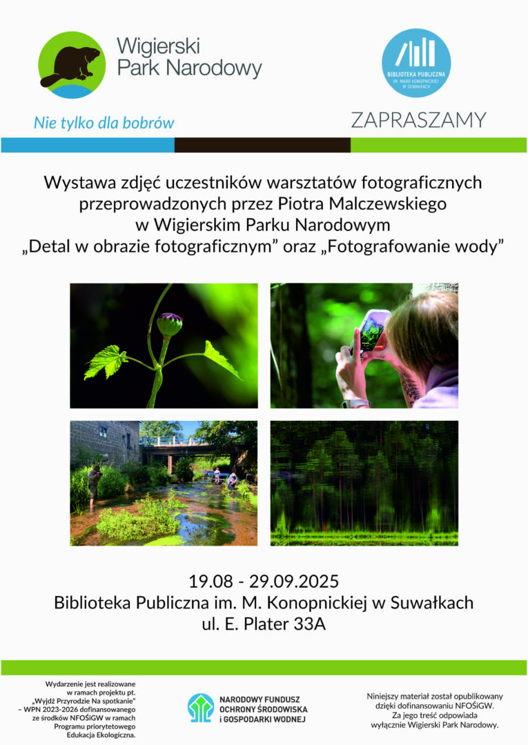 Zapraszamy na wystawę zdjęć uczestników warsztatów fotograficznych przeprowadzonych przez Piotra Malczewskiego w Wigierskim Parku Narodowym.
